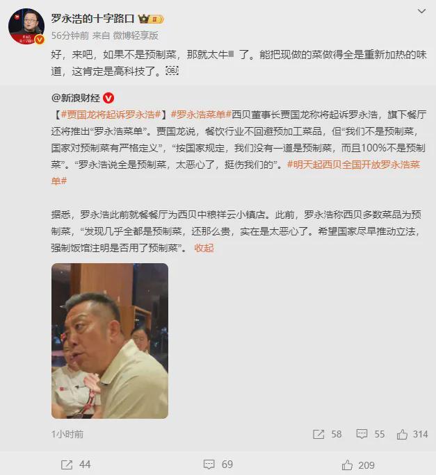 西贝创始人:罗永浩方结账时攒了会员积分,走后一小时却说“恶心”,明天起全国所有门店上线“罗永浩菜单”
